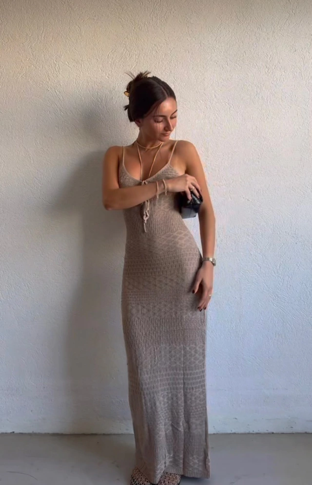 Un vestido que hipnotiza. MIRAGE es la pieza que transforma cada paso en un espejismo de elegancia y sensualidad. Su tejido calado abraza las curvas con delicadeza, mientras la espalda descubierta y el escote ajustable al frente revelan un allure irresistible. Ideal para días de verano y noches eternas, este vestido largo combina comodidad con un diseño impactante que no pasa desapercibido.